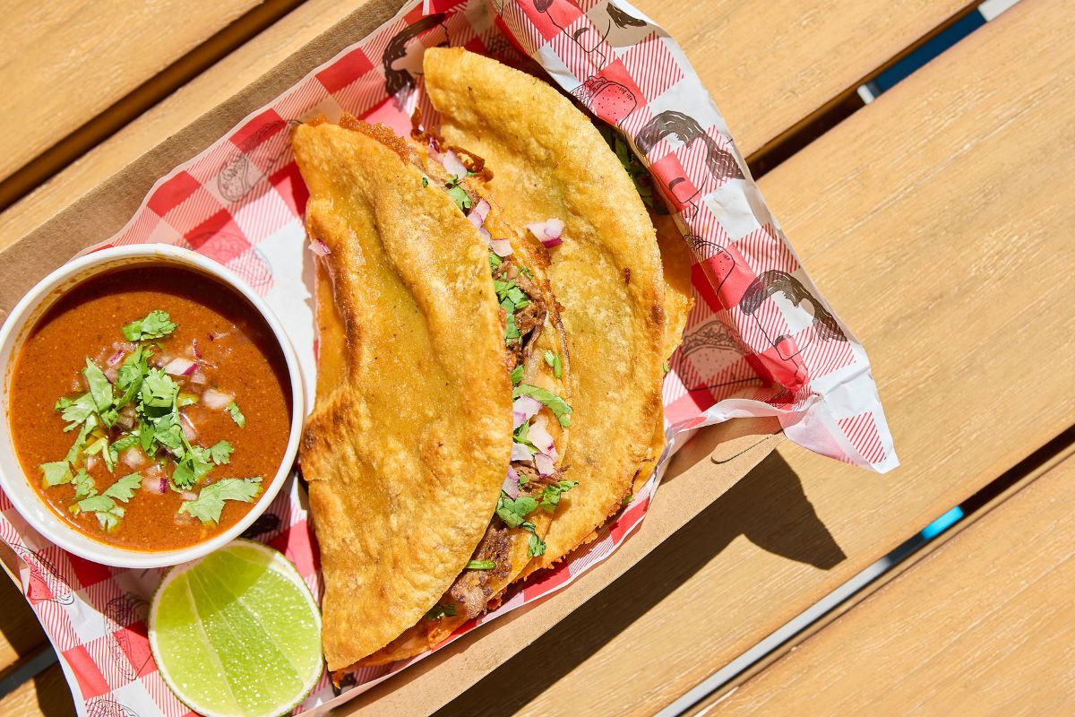 And if you think it ends with birria, think again, the menu brings even more heat. Expect street‑style soft tacos filled with pork carnitas and bright pineapple salsa, grilled chicken achiote that’s perfect for little foodies, tuna ceviche tostadas bursting with freshness, and to finish, traditional Mexican flan that hits the perfect sweet note.